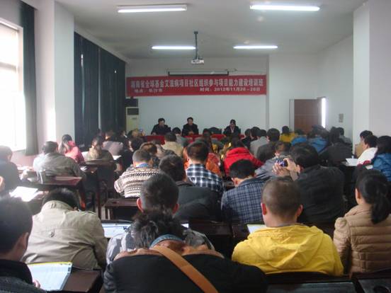 2012年11月26—28日湖南省性病艾滋病防治协会在湖南省疾病预防控制中心商务酒店举办了湖南省全球基金艾滋病项目社区组织参与项目能力建设培训班。湖南省性病艾滋病防治协会副会长、项目主任简学武、湖南省性艾协会副会长、项目执行主任陈曦等领导出席了会议,参会人数共计122人,其中社区组织项目负责人和主要执行人116人,分别来自在60个实施机构。