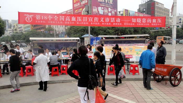 10月8-9日,由沅陵县卫生局、爱卫办、疾控中心共同组织的第18个“全国高血压日”宣传活动相继在城乡开展。到10月9日止,已有35个乡镇卫生院及分院在当地开展了宣传活动,来自县卫生局、县爱卫办、人民医院、中医院、南方医院、康复医院、沅陵镇卫生院和县疾控中心等单位工作人员共计150人参加在迎宾路统一组织的高血压日宣传义诊活动。今年宣传活动主题为“知晓您的血压”。