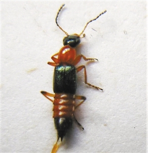 隐翅虫又被称为“影子虫”,鞘翅很短,腹部全裸,乍看像没有翅膀,故名“隐翅虫”。属昆虫纲,鞘翅目,隐翅虫科。归属节肢动物门,长有六条腿。全世界包括3200多个属,约46200种,并且每年以300-400个品种的速度增加,但并非全部有毒。毒隐翅虫多数细长,体小,身长0.6~0.8厘米。毒隐翅虫的发育为完全变态。生活史有卵、幼虫(两龄)、蛹和成虫4期。幼虫无翅,形似成虫。有些大型种类有美丽的黑色和黄色,像胡蜂;有的外形和行为均像兵蚁。颜色鲜艳的为毒隐翅虫。一般身体为橘黄色,头、胸及尾部为铁青色,也被称为“青蚂蚁”。隐翅虫广布世界各地,在全国各地都很常见,南方地区包是隐翅虫的重要分布地,而北方则较少。