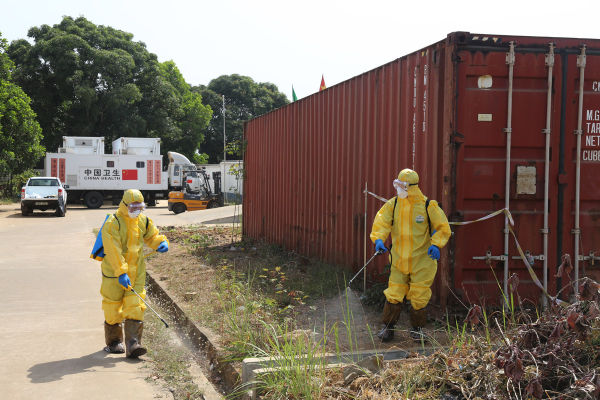塞拉利昂疟疾疾病高发,对我援塞抗疫工作人员的健康来说疟疾与埃博拉病毒一样威胁巨大。近来,我固定生物安全实验室的送检样本中疟疾阳性病例有所增加。为维护好我援塞固定生物安全实验室检测队、援塞公共卫生师资培训队的环境卫生,减少蚊虫滋生,预防疟疾等传染性疾病的发生和传播,中国CDC驻塞前方工作组于2015年4月1日组织全体队员开展了一次工作环境蚊虫消杀活动。