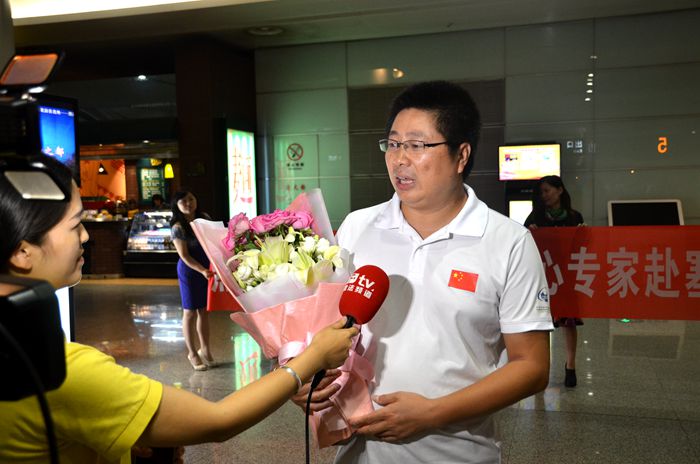 2015年6月9日晚,中心专家刘富强博士作为我国援助塞拉利昂防控埃博拉出血热疫情的第四批公共卫生师资培训队队员,在圆满完成各项任务后凯旋而归。受中心李俊华主任、黄跃龙书记的委托,中心党委李合峰副书记赴北京迎接,中心在黄花机场主楼一层大厅举行了简短而热烈的欢迎仪式。
