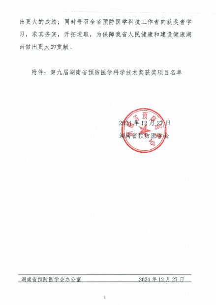 慢性病预防控制所科技成果喜获第九届湖南省预防医学科学技术奖一等奖