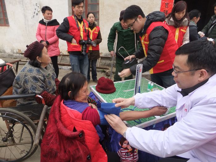 一到麻风村,志愿者们便兵分几路,贴春联、挂福字、做义诊、查身体、煮饺子,分发保暖内衣、糖果、点心、小吃,一个个忙得不亦乐乎!不一会儿,热腾腾的饺子上桌了,大家和病人们围坐在一起,一边吃着饺子,一边拉着家常,小小的麻风村里,一扫往日的寂静,充满了欢声笑语。当我们看到年迈的病人,吃完热腾腾的饺子,还一如小孩般津津有味地吮吸着棒棒糖,露出菊花般灿烂的笑容时,我们的心被融化了——我们其实做得很少很少,而他们满足的笑容却回报了我们很多很多••••••