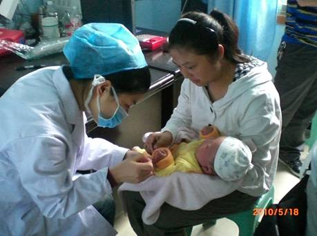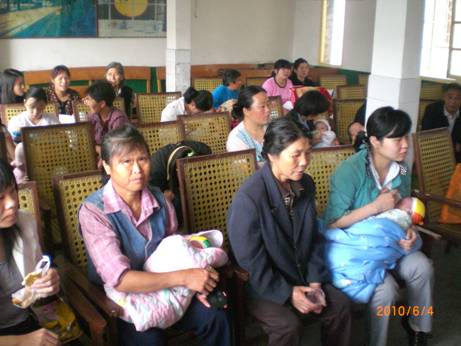 图为项目组工作人员在召开试验实施方案讨论会 图为项目实施负责人湖南省疾控中心主任助理、毒理科科长胡余明为乳母讲解注意事项 图为医院工作人员为项目参与婴儿进行体检 图为项目组工作人员为婴儿进行生长发育指标测定 图为项目组为项目参与成员家属进行健康知识讲座