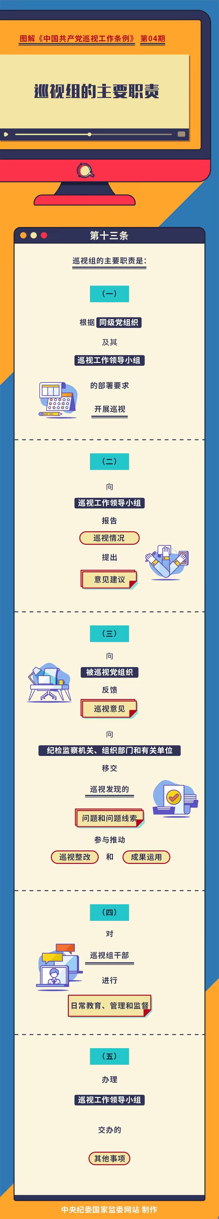 廉政微讲堂2024年第二十一期 | 图解《中国共产党巡视工作条例》04 :巡视组的主要职责