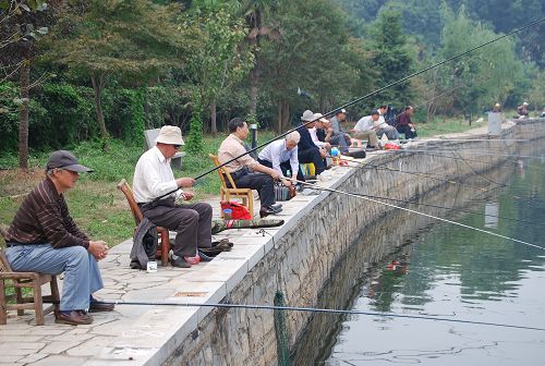 9月26日,中心离退休老同志参加了厅直单位钓鱼比赛并获奖,图为比赛现场。(老干科 唐平益供稿)