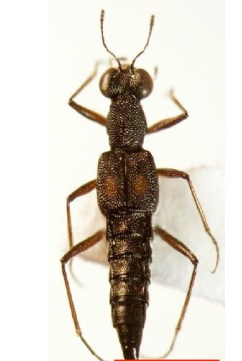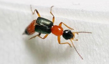隐翅虫又被称为“影子虫”,鞘翅很短,腹部全裸,乍看像没有翅膀,故名“隐翅虫”。属昆虫纲,鞘翅目,隐翅虫科。归属节肢动物门,长有六条腿。全世界包括3200多个属,约46200种,并且每年以300-400个品种的速度增加,但并非全部有毒。毒隐翅虫多数细长,体小,身长0.6~0.8厘米。毒隐翅虫的发育为完全变态。生活史有卵、幼虫(两龄)、蛹和成虫4期。幼虫无翅,形似成虫。有些大型种类有美丽的黑色和黄色,像胡蜂;有的外形和行为均像兵蚁。颜色鲜艳的为毒隐翅虫。一般身体为橘黄色,头、胸及尾部为铁青色,也被称为“青蚂蚁”。隐翅虫广布世界各地,在全国各地都很常见,南方地区包是隐翅虫的重要分布地,而北方则较少。