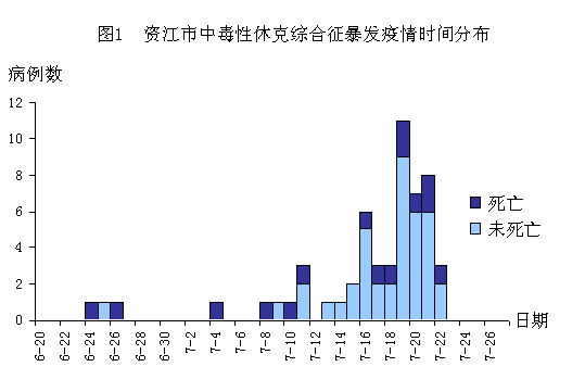 2005年6月底以来,四川省资阳市发生了以急性起病,高热、伴头痛等全身中毒症状,重者出现中毒性休克、脑膜炎为主要临床表现的原因不明感染性疾病疫情。截止7月23日12时,全市共发现病例55例,其中已有15例病人死亡。中国疾病预防控制中心工作组会同省、市、县疾控中心对病例的流行病学调查、临床检查和实验室检测结果进行了初步分析,结果报告如下。