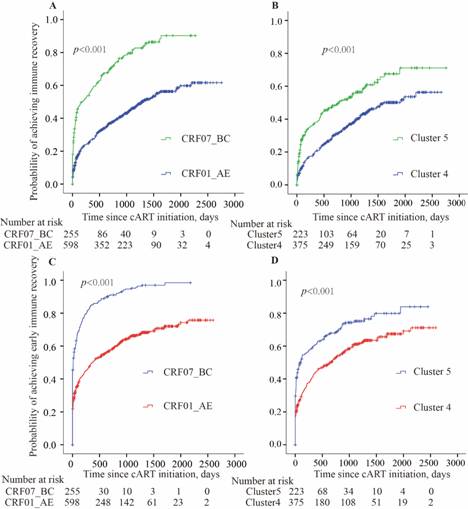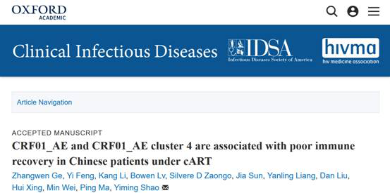 在上述研究的基础上,邵一鸣教授研究团队接着针对不同HIV亚型/亚簇患者进行了随访调查,以观察感染者在联合抗逆转录病毒治疗(cART)期间的免疫恢复情况,并对相关的影响因素进行了深入分析,介绍该工作的论文已发表于国际学术期刊《临床传染病杂志》(Clinical Infectious Diseases)。其研究结果显示,在接受cART治疗的患者中,除基线CD4+T淋巴细胞水平和年龄等因素与免疫恢复能力相关外,CRF01_AE亚型患者与CRF07_BC亚型患者相比其免疫恢复水平更差。而在CRF01_AE亚型内部亚簇中, C4簇患者相对于 C5簇患者其免疫恢复更差。在进一步的机制研究发现,CRF01_AE和CRF01_AE C4簇患者免疫恢复更差的原因是由于两者拥有着更高比例的X4嗜性病毒。因此为了提高我国HIV患者的治疗效果,他们建议对于各地区艾滋病患者cART治疗方案的制定应充分考虑当地HIV的亚型和亚簇类型,同时还指出在我国X4嗜性HIV病毒高流行区应谨慎使用CCR5抑制剂。这项研究不仅首次对中国流行的主要亚型和亚簇cART治疗期间免疫恢复情况进行了深入分析,还为我国将来更加精细化HIV患者cART方案的制订奠定了基础。