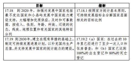表1 SDG17,目标和与数据、监测和问责制相关的指标