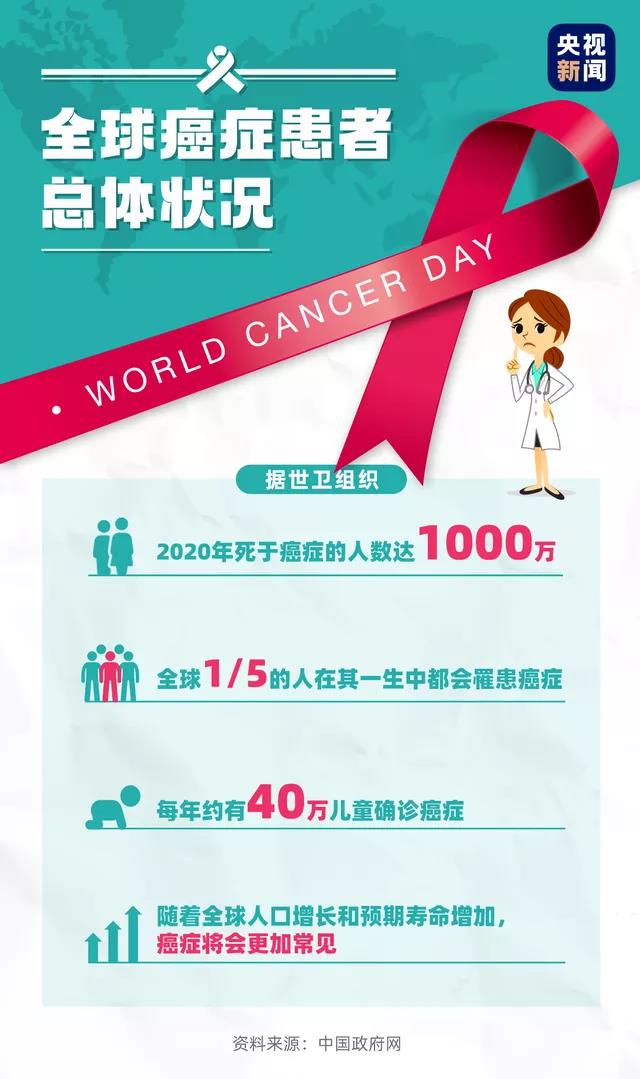世卫组织资料显示:2020年,全球有1000万人死于癌症,1/5的人在其一生中都会罹患癌症!