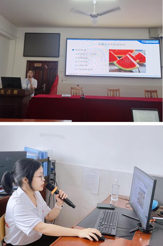 7月14日下午和15日上午,工作组先后赴章华学校、明辉中心、状元湖实验学校开展讲座,华容县疾控中心薛婉婷、省疾控中心食安科吴诗蓝与邓志红主任医师分为作为宣讲员向安置点群众宣传卫生卫生防病知识。期间,向与会群众发放了工作组编写的《团洲垸转移群众返家后卫生防病指引》等宣传资料 。
