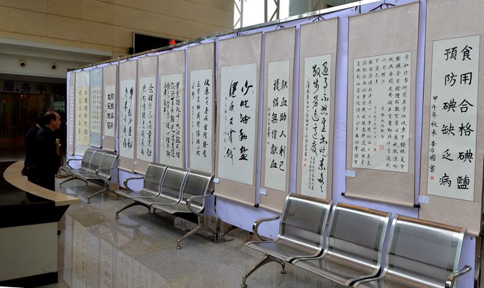 由岳麓区疾病预防控制中心主办的“关注慢性病,岳麓健康杯”主题书法展览,于十一月二十八日上午在岳麓区政府政务大厅隆重开幕。这是一个不同于其他书法展览的主题性书法展,主办单位在三个月前通过岳麓新闻网向社会公开发布征稿启示时,特别附加了“慢病防治与健康知识语录”,并要求参展作品从艺术创作与书写内容两个方面巧妙结合,突出健康主题,弘扬健康文化。让广大书法家在气运流动的笔墨挥洒间吸收更多防病强身的养分,让广大观众在欣赏书法艺术过程中,学到更多丰富的健康知识。寓教于乐,学至于乐。