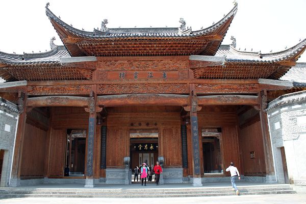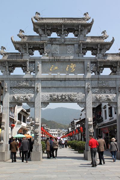当然,我对江湾情有独钟。作为江家子孙,我也有寻根问祖的情结,何况它是原国家主席江泽民的祖籍地呢。在江湾的萧江宗祠敬奉的三块祖先牌位中,我找到了“必”字辈牌位,我爷爷就是“必”字辈的啊。我想,钟灵毓秀的千年古镇江湾与我的祖籍地湖北秭归(屈原和王昭君的故乡)也许有某种必然联系吧?据宗祠的江氏后人介绍,江湾始建于隋末唐初,北宋神宗元丰二年(1079年)萧江第八世祖江敌始迁江湾,子孙逐渐繁衍成为望族,现在80%江湾人姓江。一千多年来,这里孕育了一大批风流人物,名传千古。我荡漾在修葺一新的江湾新镇,看那一座座徽派新建筑彰显出的新江湾的新景象,那高大的马头墙预示着我们江家传人生生不息,兴旺发达!