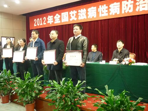 在总结2011年全国艾滋病性病防治工作情况的同时,从不同的领域对2011年全国艾滋病性病主要措施落实质量进行了综合评比,对工作成绩突出的地区和单位进行了表彰。我省荣获“2011年度扩大检测扩大治疗奖”,我省张家界市永定区荣获“2011年度艾滋病综合防治示范区优秀奖”。湖南省疾病预防控制中心副主任陈培厚参加会议并代表湖南省接受奖牌。